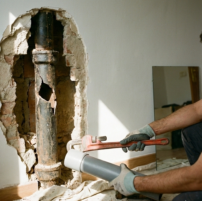 Reparación de la Causa: Generalmente, si la tubería es vieja, el seguro no paga el trozo de tubo nuevo. SIN EMBARGO, en edificios residenciales con bajantes rehabilitadas, si se justifica con proyecto y factura de obra, el seguro suele cubrir también la reparación del tramo afectado al considerarse una instalación renovada.